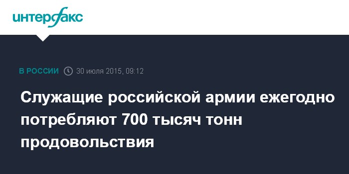 Служащие российской армии ежегодно потребляют 700 тысяч тонн продовольствия