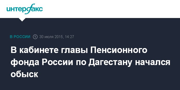 Москва. 30 июля. INTERFAX.RU - Сотрудники правоохранительных органов в четверг проводят следственные мероприятия, в том числе обыск, в кабинете руководителя отделения Пенсионного фонда России в Дагестане Сагида Муртазалиева, сообщил "Интерфакс" источник в правоохранительных органах республики.