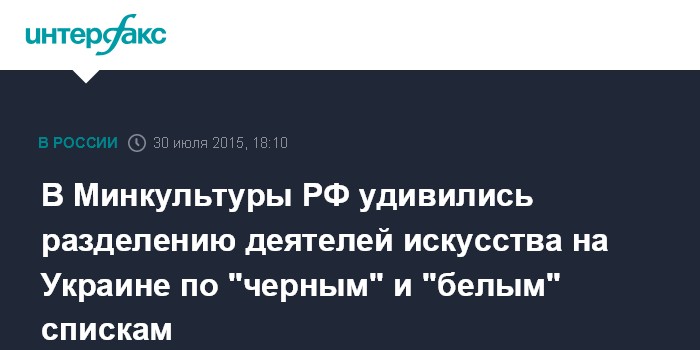 В Минкультуры РФ удивились разделению деятелей искусства на Украине по "черным" и "белым" спискам