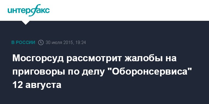 Мосгорсуд рассмотрит жалобы на приговоры по делу "Оборонсервиса" 12 августа
