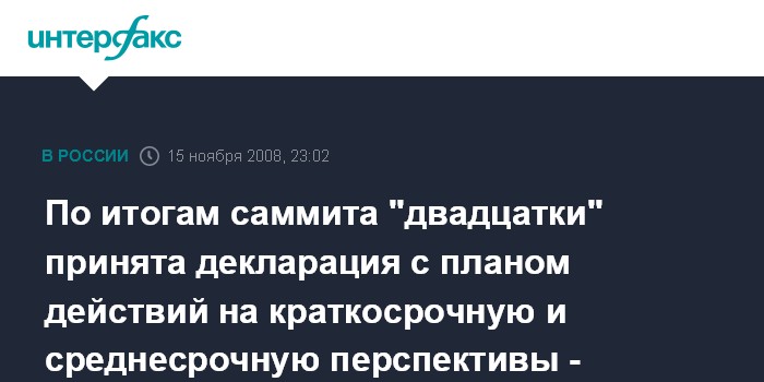 Вашингтон. 15 ноября. ИНТЕРФАКС - По итогам саммита G20 принята декларация, содержащая план действий, заявил журналистам помощник президента РФ Аркадий Дворкович.