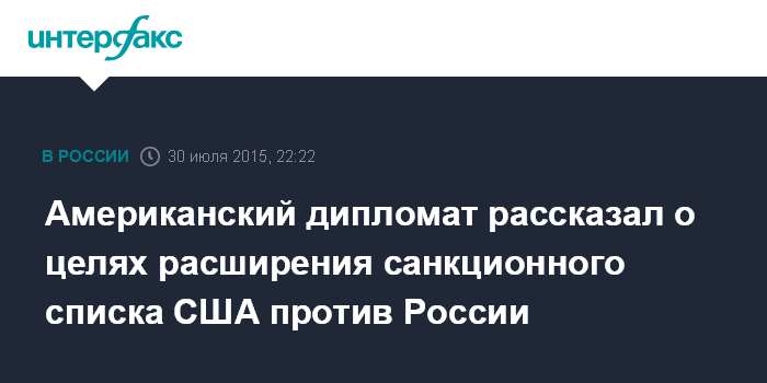 Американский дипломат рассказал о целях расширения санкционного списка США против России