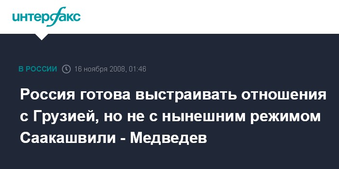 "Мы готовы выстраивать и отношения с Грузией, но не с нынешним режимом", - сказал Д.Медведев.