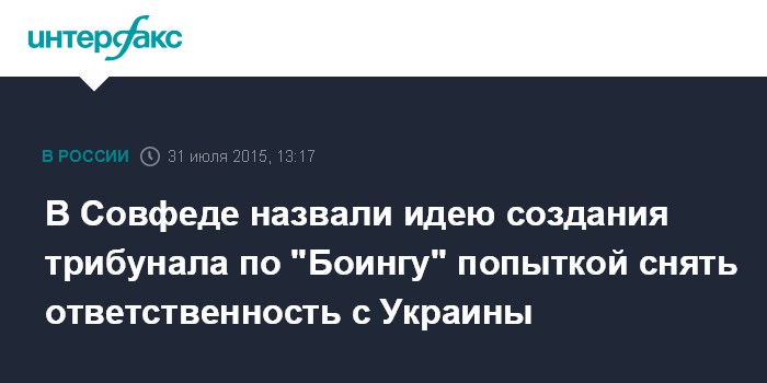 Москва. 31 июля. INTERFAX.RU - В Совете Федерации считают нежизнеспособной идею международного трибунала по поиску виновных в крушении малайзийского "Боинга" в июле прошлого года на востоке Украины.