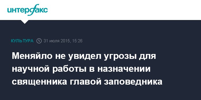Меняйло не увидел угрозы для научной работы в назначении священника главой заповедника