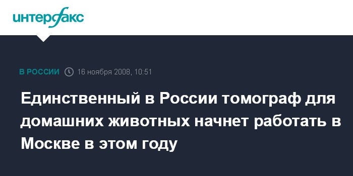 Москва. 16 ноября. INTERFAX.RU - На базе Красногвардейской участковой ветеринарной лечебницы Москвы в этом году начнет работать единственный в России компьютерный томограф для мелких домашних животных, сообщил начальник отдела столичного комитета ветеринарии Сергей Филатов.