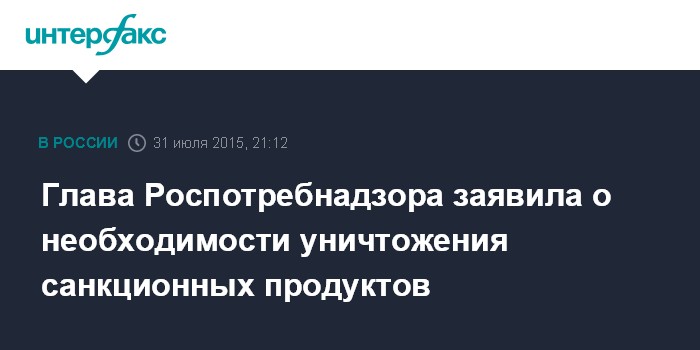 Глава Роспотребнадзора заявила о необходимости уничтожения санкционных продуктов