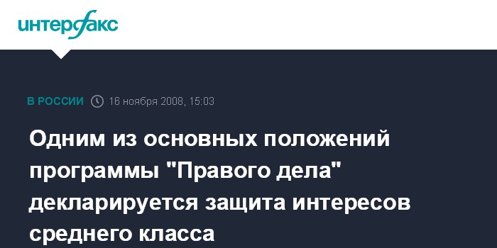 Одним из основных положений программы "Правого дела" декларируется защита интересов среднего класса