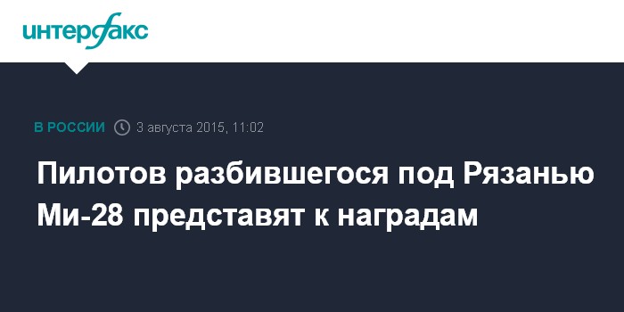 Москва. 3 августа. INTERFAX.RU - Министр обороны РФ генерал армии Сергей Шойгу поручил командованию Воздушно-космическими силами (ВКС) представить к награждению пилотов разбившегося в минувшее воскресенье на полигоне Дубровичи под Рязанью вертолета Ми-28Н.