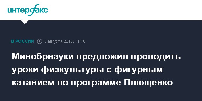 Москва. 3 августа. INTERFAX.RU - Экспертный совет Минобрнауки РФ рекомендовал новые программы для уроков физкультуры, в том числе на основе фигурного катания по методике российского фигуриста Евгения Плющенко.