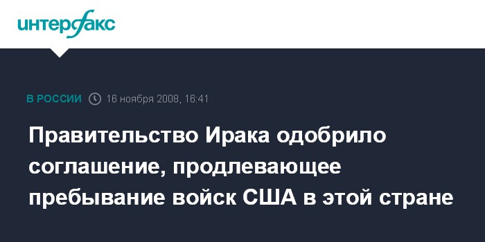 Лондон. 16 ноября. INTERFAX.RU - Правительство Ирака одобрило соглашение с США, в котором оговаривается статус американских войск в стране.