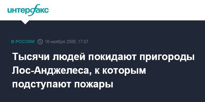 Мэр Лос-Анджелеса Антонио Вильярайгоса призвал жителей уходить, не дожидаясь, пока пожары приблизятся к их домам. "Если вы еще ждете, когда к вам подступит пожар, то хватит ждать", - цитируются в сообщении слова мэра.