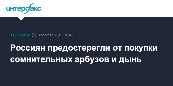 Москва. 3 августа. INTERFAX.RU - В Роспотребнадзоре призвали россиян не приобретать бахчевые в неустановленных местах торговли.