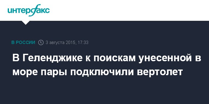 Москва. 3 августа. INTERFAX.RU - Спасатели вторые сутки ищут в акватории Черного моря под Геленджиком пропавших мужчину и женщину, сообщила в понедельник пресс-служба Южного регионального поисково-спасательного отряда МЧС.