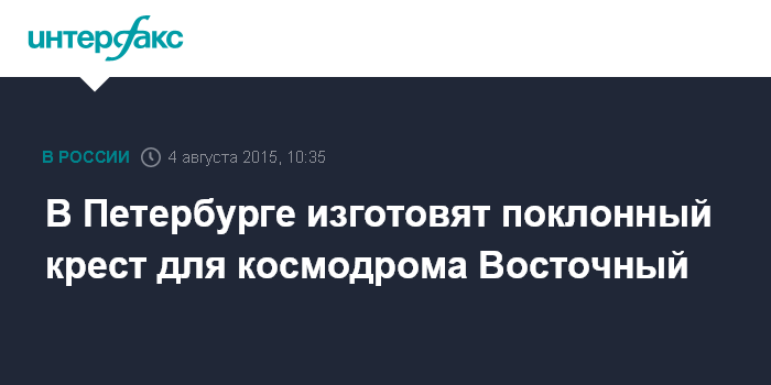 В Петербурге изготовят поклонный крест для космодрома Восточный