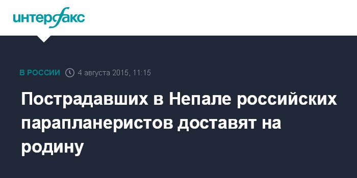 Пострадавших в Непале российских парапланеристов доставят на родину