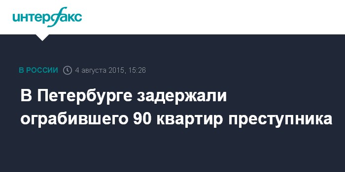 Москва. 4 августа. INTERFAX.RU - Сотрудники полиции Петербурга установили около 90 эпизодов квартирных краж, которые совершил в нескольких районах города один подозреваемый, сообщает пресс-служба ГУ МВД по региону во вторник.