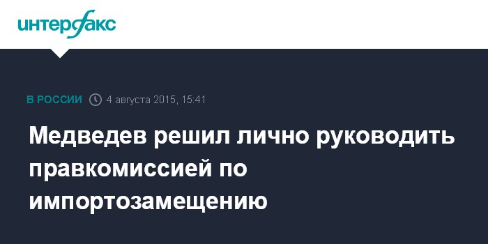Москва. 4 августа. INTERFAX.RU - Премьер-министр РФ Дмитрий Медведев сообщил, что планирует лично возглавить правительственную комиссию по импортозамещению, при которой будут созданы две подкомиссии - по гражданской и оборонной промышленности.