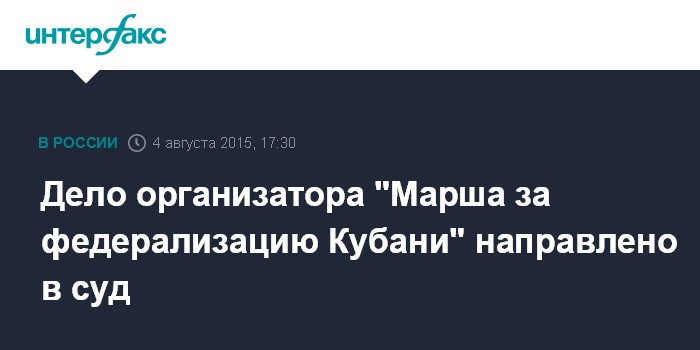 Дело организатора "Марша за федерализацию Кубани" направлено в суд