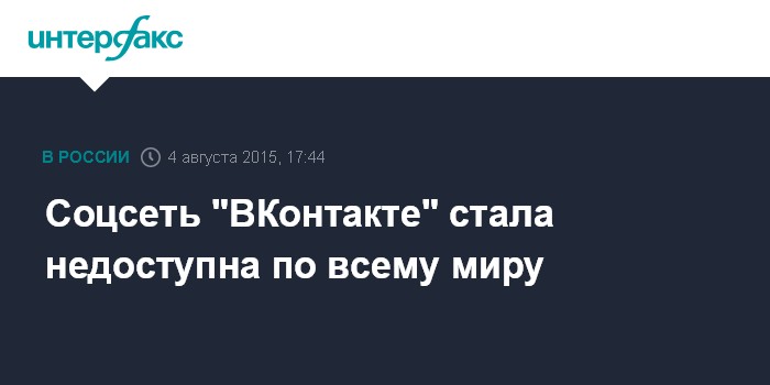 Москва. 4 августа. INTERFAX.RU - Социальная сеть "ВКонтакте" не работает вечером во вторник по всему миру, сообщил пресс-секретарь "ВК" Георгий Лобушкин в твиттере.
