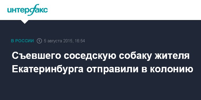 Москва. 5 августа. INTERFAX.RU - Первоуральский городской суд отправил в колонию-поселение жителя Свердловской области, который во время застолья съел соседскую собаку.