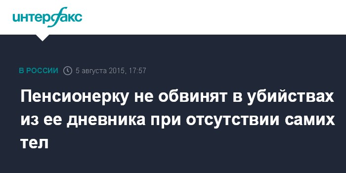 Пенсионерку не обвинят в убийствах из ее дневника при отсутствии самих тел