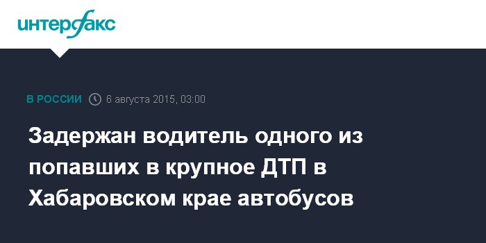 Москва. 6 августа. INTERFAX.RU - Водитель одного из рейсовых автобусов, попавших в среду в крупное ДТП в Хабаровском крае, водворен в изолятор.