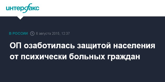 Москва. 6 августа. INTERFAX.RU - Председатель комиссии по безопасности Общественной палаты РФ (ОП РФ) Антон Цветков в связи с убийством семьи Беловых-Зайцевых запросил в Минздраве РФ сведения о контроле за психически нездоровыми россиянами и их количестве, а в Генпрокуратуре - статистику по совершенным ими преступлениям.