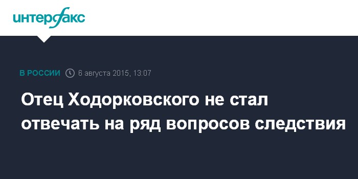 Москва. 6 августа. INTERFAX.RU - Отец экс-главы ЮКОСа Борис Ходорковский, вызванный в четверг на допрос в Следственный комитет России, отказался отвечать на большинство заданных ему вопросов, заявил его адвокат Сергей Бадамшин.