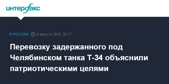 Перевозку задержанного под Челябинском танка Т-34 объяснили патриотическими целями