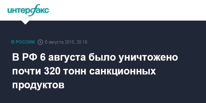 В РФ 6 августа было уничтожено почти 320 тонн санкционных продуктов