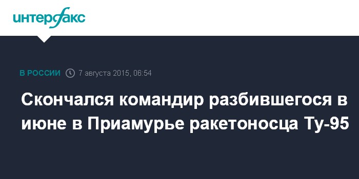 Москва. 7 августа. INTERFAX.RU - Скончался Сергей Горшнев - командир ракетоносца Ту-95, который в июне потерпел аварию на военном аэродроме Украинка в Амурской области.