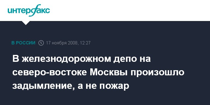 Он подчеркнул, что эта организация, сопряженная с МЖД, однако не входит в ее структуру. "После обнаружения задымления сотрудники депо действовали согласно регламенту по ликвидации очага. Ни эвакуации, ни других экстренных мер не проводилось", - подчеркнул Мягков. Он добавил, что сейчас ведутся работы по выяснению причин задымления в вагонном депо.