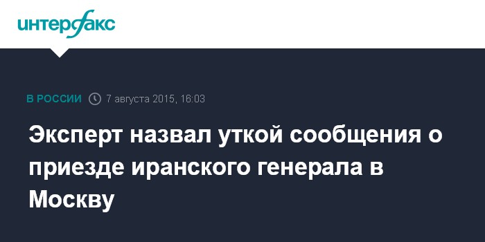 Москва. 7 августа. INTERFAX.RU - Информация о том, что командующий элитным спецподразделением "Аль-Кудс" в составе иранского Корпуса стражей исламской революции (КСИР) Касем Солеймани в конце июля якобы посетил Москву является выдумкой, считает директор центра изучения современного Ирана Раджаб Сафаров.