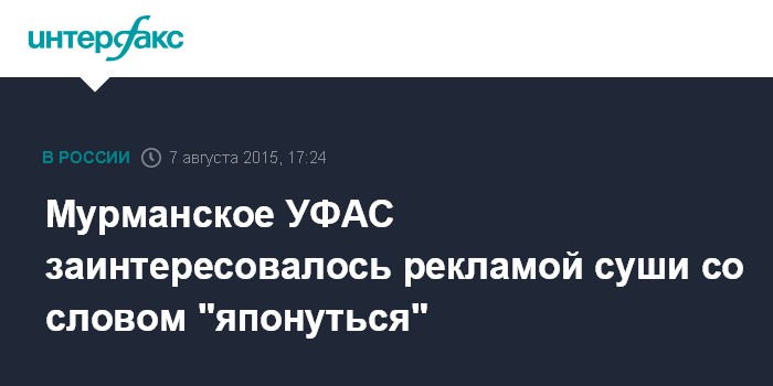 В первом случае экспертный совет Мурманского УФАС обратил внимание на рекламу "Японуться теперь можно. Скидка 20% на все роллы", размещенную в общественном транспорте. По словам Юрченко, большинством голосов членов экспертного совета реклама была признана неэтичной.