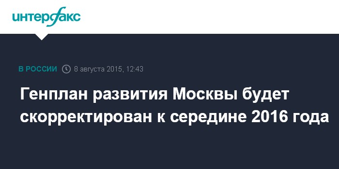 Генплан развития Москвы будет скорректирован к середине 2016 года
