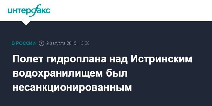 Москва. 9 августа. INTERFAX.RU - Гидроплан, столкнувшийся с вертолетом над Истринским водохранилищем в Подмосковье, выполнял несанкционированный полет, сообщил "Интерфаксу" в воскресенье источник в службах транспортного надзора региона.