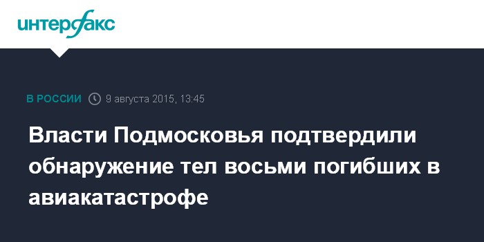 Власти Подмосковья подтвердили обнаружение тел восьми погибших в авиакатастрофе
