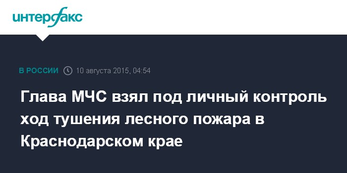 Москва. 10 августа. INTERFAX.RU - Глава МЧС России Владимир Пучков взял под личный контроль ход тушения природного пожара в Краснодарском крае.