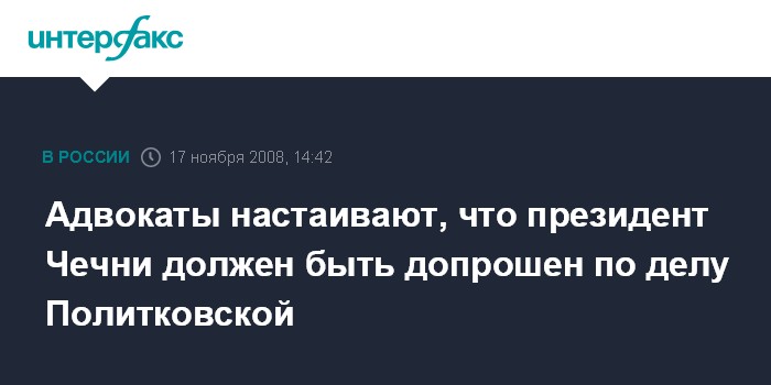 Москва. 17 ноября. INTERFAX.RU - Адвокаты семьи обозревателя "Новой газеты" Анны Политковской добиваются допроса президента Чечни Рамзана Кадырова в качестве свидетеля по делу об ее убийстве.