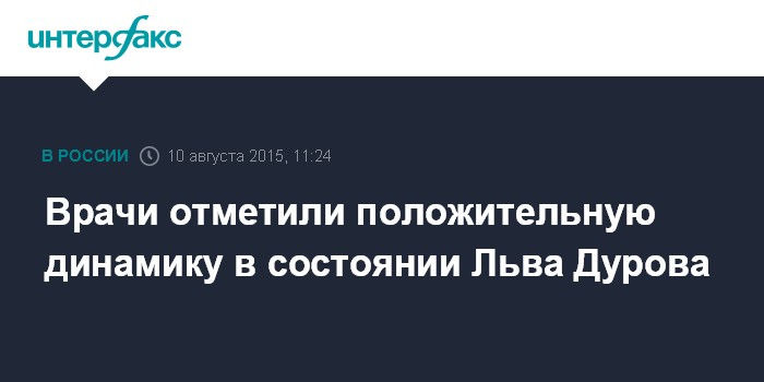 Москва. 10 августа. INTERFAX.RU - Врачи выражают осторожный оптимизм относительно состояния здоровья актера Льва Дурова, госпитализированного на минувшей неделе.