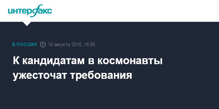 Москва. 10 августа. INTERFAX.RU - Следующий набор в отряд космонавтов, который начнется весной 2016 года, будет проводиться по более жестким требованиям, сообщил журналистам в понедельник глава Центра подготовки космонавтов (ЦПК) Юрий Лончаков.