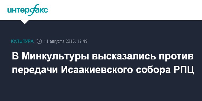 Москва. 11 августа. INTERFAX.RU - Министр культуры Владимир Мединский считает, что Исаакиевский собор должен остаться в прежнем статусе.