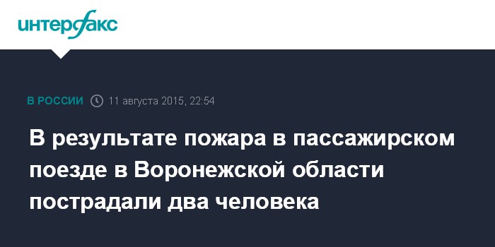 Москва. 11 августа. INTERFAX.RU - В Воронежской области во вторник на станции "Графская" произошло возгорание в вагоне пассажирского поезда, сообщили "Интерфаксу" в пресс-службе Юго-Восточной железной дороги (ЮВЖД).