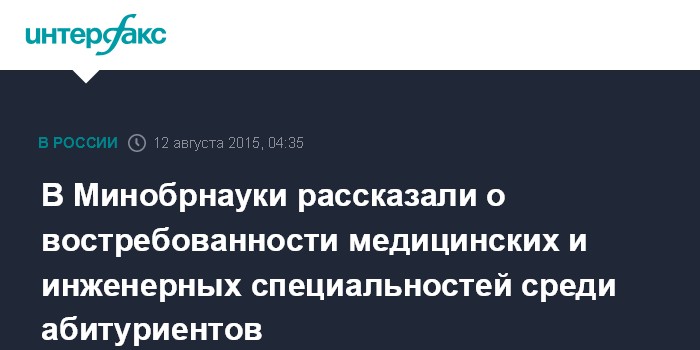 "По заявлениям, которые подавали абитуриенты, самыми востребованными оказались медицинские, экономические и некоторые инженерные направления и специальности подготовки. В области инженерного образования у абитуриентов наиболее популярны авиастроение, космическая техника, информационная безопасность, нефтегазовые направления и специальности", - сказал Климов в интервью газете "Известия".