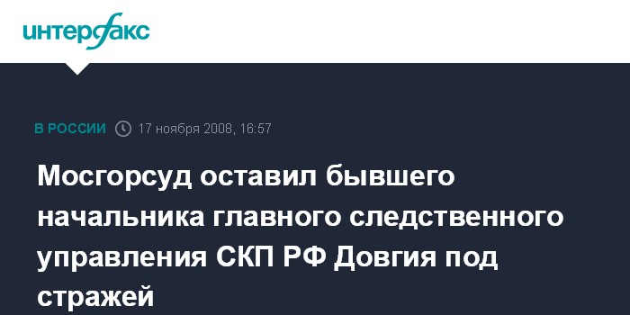 Мосгорсуд оставил бывшего начальника главного следственного управления СКП РФ Довгия под стражей