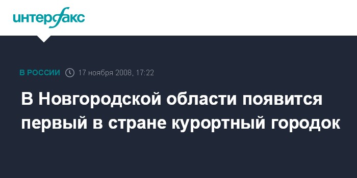 Москва. 17 ноября. INTERFAX.RU - Строительство первого в России курортного городка начнется летом 2009 года на берегу Валдайского озера в Новгородской области, сообщил в понедельник "Интерфакс-Туризму" руководитель Федерального агентства по туризму РФ (Ростуризм) Анатолий Ярочкин. По его словам, четырехсторонний договор о создании курортного города был подписан в минувшую субботу между Новгородской областью, Ростуризмом, Валдайским муниципальным образованием и ЦНИИ Курортных зданий и комплексов.