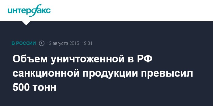 Объем уничтоженной в РФ санкционной продукции превысил 500 тонн
