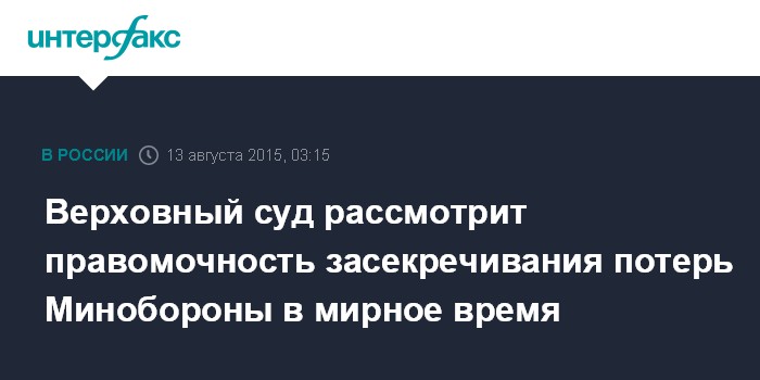 Верховный суд рассмотрит правомочность засекречивания потерь Минобороны в мирное время