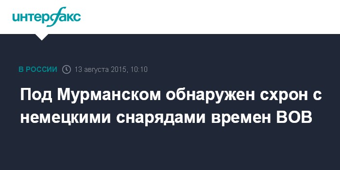 Москва. 13 августа. INTERFAX.RU - На въезде в закрытое административно-территориальное образование (ЗАТО) Заозерск в Мурманской области сотрудники управлений ФСБ России по Северному флоту и Мурманской области совместно с полицией обнаружили схрон с боеприпасами времен Великой Отечественной войны.